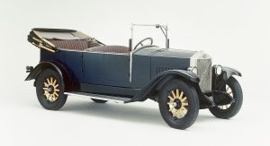 Parked side by side, the similarities between old and new are remarkable. The curvature of the bonnet has exactly the same radius. The characteristic windscreen attachment pillar that runs down the body side follows the original in detail as regards dimensions, materials and the number of screws used. Equally identical is the radiator grille with its characteristic mesh pattern and diagonal bar that incorporates the classic iron symbol. The body has been built by hand from raw aluminium panels that were bent into their final shape using a hammer and English wheel. Exactly as it was done in the prototype workshop back in the 1920s.