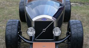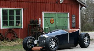 Made in honour of Volvo’s 80th birthday, the Jacob is a retro-penned hotrod inspired by the first series-produced Volvo car, the ÖV4 (the Swedish abbreviation for Open Car, 4 cylinders) that gained the nickname “Jacob”. The hand-built aluminium body hotrod is based on a carbon-fibre chassis and it’s equipped with Volvo’s Flexifuel, five-cylinder turbocharged petrol engine that generates 265 Hp. The Jacob hotrod will be unveiled at the Volvo Museum in Göteborg before setting off on a tour of the Nordic region and the USA later on this year. –Pics and details after the jump