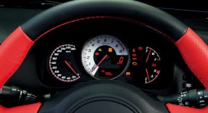 The interior design of the sports coupe is generally uncluttered featuring a three-meter instrument cluster arranged around a large tachometer and a large center screen for the audio and navigation systems.