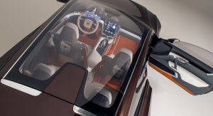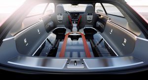 A centerpiece of the interior re-think is the elimination of as many traditional buttons as possible and their replacement with a large tablet-like touch screen control panel in the center console, with a small row of switchgear positioned just under for “crucial” functions like volume, play/pause, hazard warning and window heaters.
