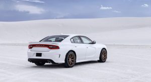 While we don’t know of any other regular production sedan with more ponies than the Charger Hellcat, the 600PS (592hp) and 700Nm (516 lb-ft) BMW M5 30th Anniversary Edition might match its standard sprint time, as it has a 0-62mph (100km/h) in 3.9 seconds. However, we won’t know for sure unless BMW releases a 0-60mph time. Plus, the BMW is a limited edition version. The regular 552hp (560PS) M5 loses hands down with a 0-60mph in 4.3 seconds.