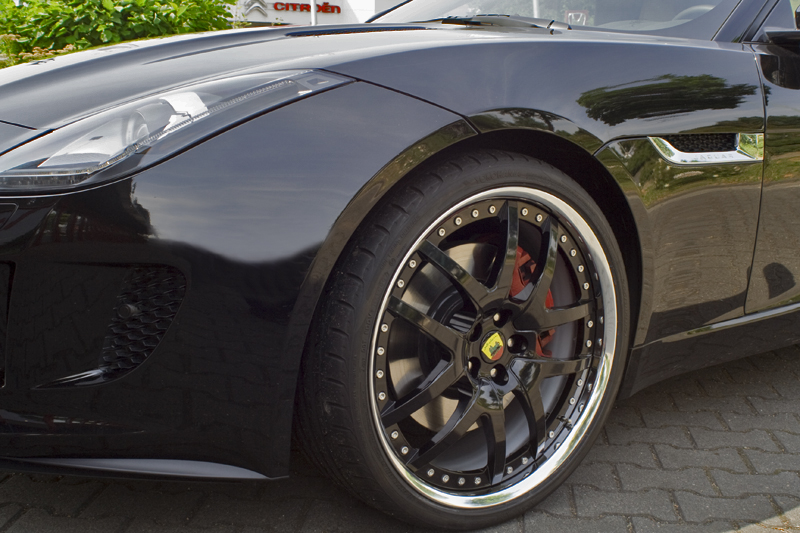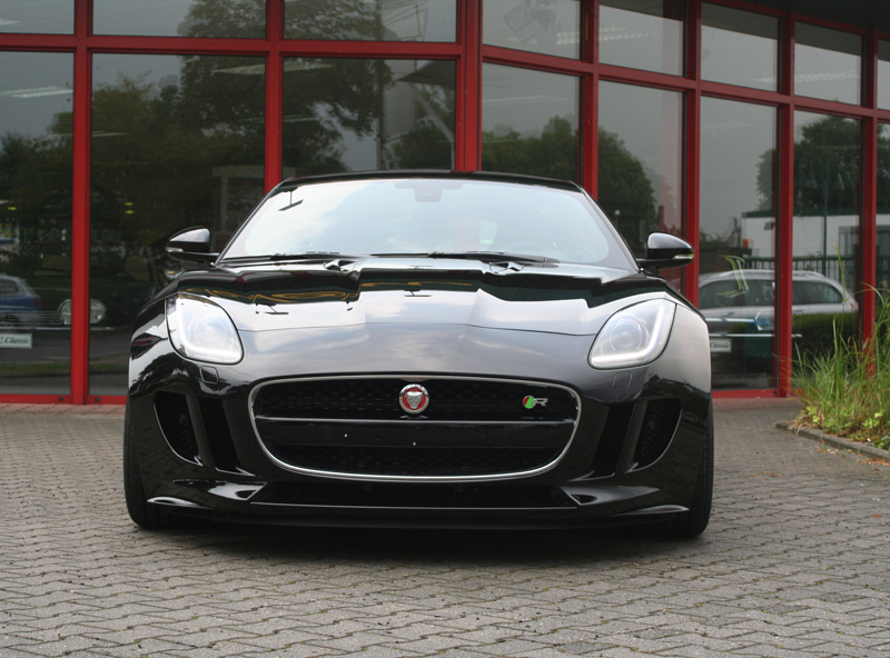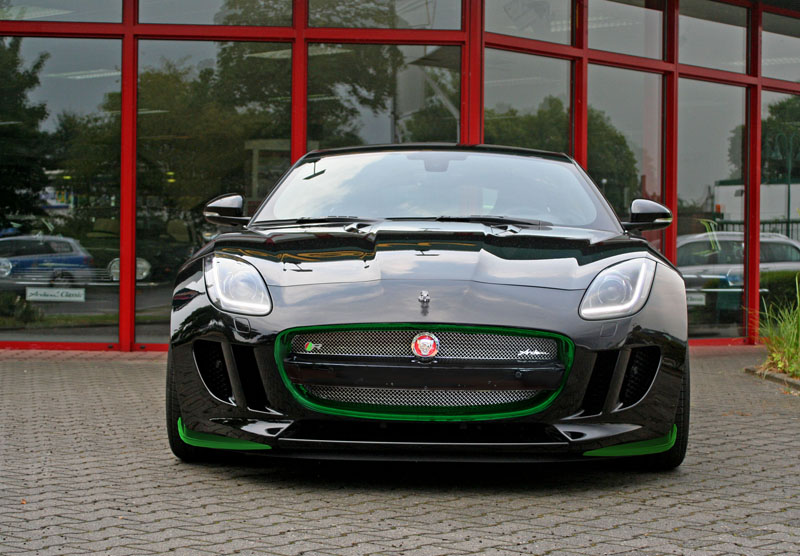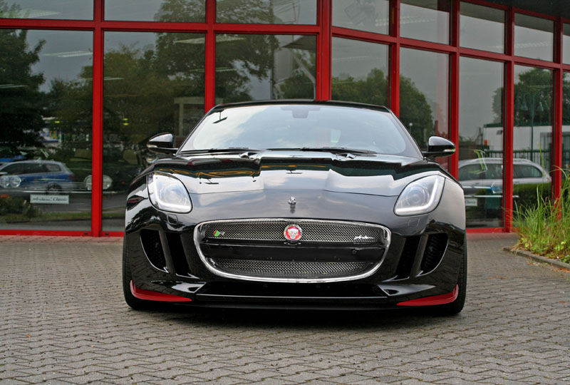 Their cosmetic offerings for the exterior of the F-Type range from an old-school leaping cat for the bonnet (€276 w/o tax) to front aerodynamic flaps (€1,300), boot lid spoilers (€650), aluminum grilles (€890) and rear diffuser trims.