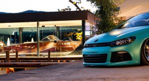 Evidently, it’s not the only thing that stands out on their Scirocco R display model that rides on huge chromed wheels and an airbag suspension, while the 2.0-liter turbocharged four has been tuned to deliver around 370PS (365hp), up from the stock model’s 265PS (261hp – if it’s the pre-facelift version).