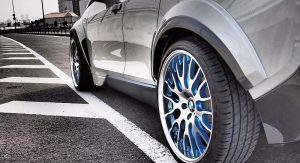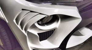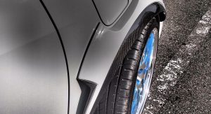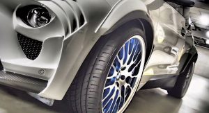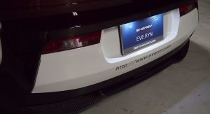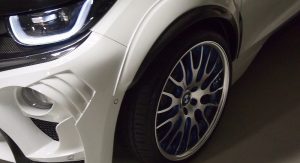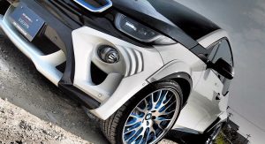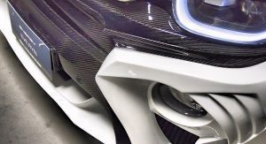 The tuner added wider wheel arches on all four corners to place bigger set of alloy wheels and tires, beefier bumpers on both ends, a carbon fiber front spoiler and rear diffuser, plus matching side skirts.