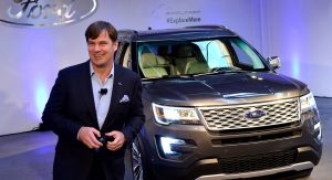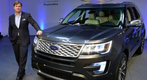 As for new technology features, the 2016 Explorer gets front and rear cameras with washers, enhanced active park assist with perpendicular park assist, park-out assist and semi-automatic parallel parking, smart-charging USB ports throughout, hands-free liftgate, 500-watt Sony Audio System, Active Grille Shutters and air curtains.
