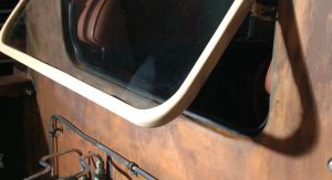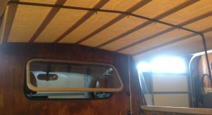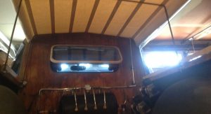 The interior has baseball stitch leather heated seats from a 2004 Audi TT with matching steering wheel and shift knob. Retro hardwood plank floors and rear custom safari wood frame window, working three position sunroof, dash top flip up DVD player and 500 watt stereo system.