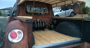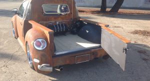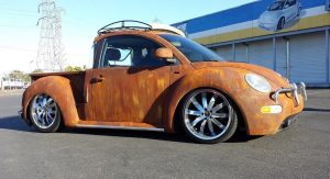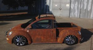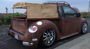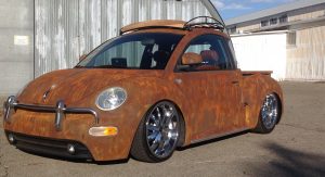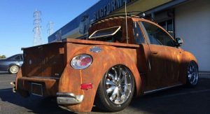 Not content with a “simple” pickup-truck conversion, the diesel-powered New Beetle’s owner gave it a rustic look through a special paint job said to contain rust (or something that imitates it) along with some other interesting details such as the chrome trims and bumper guards.