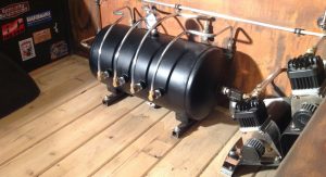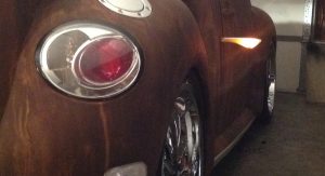 Complete Airtech 4 wheel air ride system. The car lays out at 1.5 inches at it’s lowest point and will raise 4 inches above stock height, a MUST SEE! Custom PIP style roof rack, with wooden slats. LOTS of custom retro touches make this new Beetle a fan favorite at all the shows. It even has a set of working semaphores.