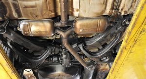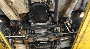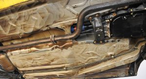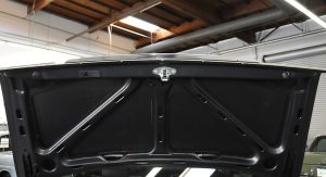 All the peripheral items appear unused and preserved to perfection: Spare wheel/tire, jack, tire changing placard, safety kit, quick reference red and blue placards etc. Opening the hood reveals an engine bay area appearing virtually as new with all the factory waxol coating intact, all decals intact and perfect, hood pad in perfect condition and all hardware finishes in as-new condition. The torque value paint swatches remain brilliant throughout both the engine bay and the undercarriage.