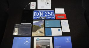 Handbooks include: Wallet key – Data plate – Becker Grand Prix operation instructions – Diesel Fuel directory – Owner’s handbook – Diesel Cold weather starting guide – MB consumer information pamphlet – Small service reminder booklet – Corrosion Inspections Confirmations – 1982 Service and Warranty Policy – FM reception fact booklet – Maintenance Booklet – Quick reference placards – Mercedes-Benz Canada Inc. thank you card.