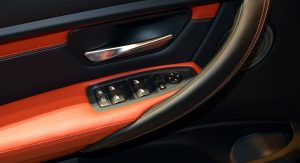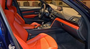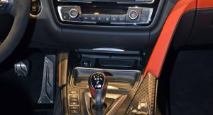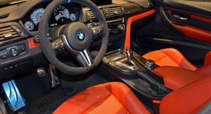 Inside, there’s even more “drama” with awesome orange leather seats and inserts throughout the cabin (Sakhir Orange), carbon fiber elements and of course the Alcantara-wrapped steering wheel, which not only looks but also is seriously grippy.