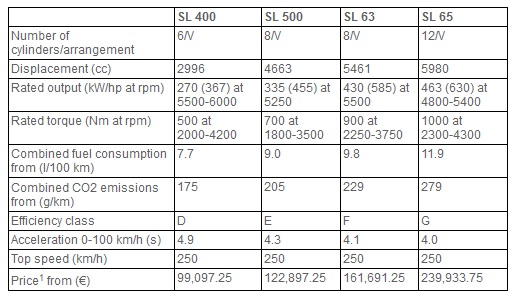 The SL 500 costs €122,897.25 ($134,084) with its 4.7-liter V8 and 455PS (449hp) and 700Nm (516lb-ft), while the cheapest AMG, the SL 63, starts from €161,691.25 ($176,410) and justifies its badge with a 5.5-liter V8 rated at 585PS (577hp) and 900Nm (664lb-ft).