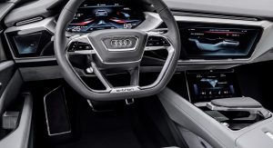 Since it’s all about the future, the vehicle is also electrified, as its name suggests, and power comes from three electric motors, with a total output of 496hp (503PS), sent to the Quattro all-wheel drive system. The 95kWh battery is located between the axles and it’s not affecting the vehicle’s center of gravity. The total range of the one-off, which will transform into a production model in 2018, is just over 311miles (500km).