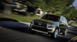 KIA also says that the Telluride is powered by a plug-in hybrid powertrain, consisting of a 270hp 3.5-litre V6 petrol engine and a 130hp electric motor for a combined 400hp which allows the big SUV concept to return 30mpg on the highway.