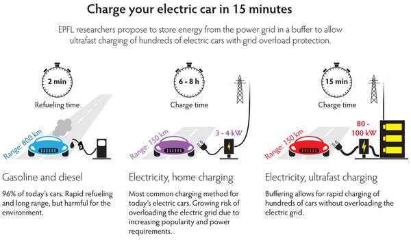 “With this buffer storage, charging stations can be disconnected from the grid while still providing a high charge level for cars“, said Alfred Rufer, a researcher in EPFL.