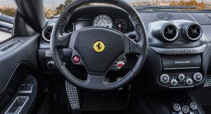 The seller talks about its independent front and rear wishbone suspension system with the SCM magnetorhological damping, four-wheel carbon ceramic disc brakes and six-speed manual automated F1 transmission, which might not be the desired manual from the more common 599 GTB, but it still does the trick of sending 670hp from the 6.0-liter V12 engine to the rear wheels.
