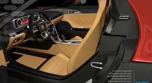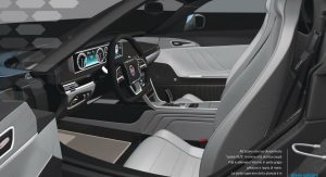According to the man behind the drawings, this car is an every-day sports car, and the cabin reflects just that. The seats aren’t overly sporty, while it features leather on the upper dash (there are multiple configurations), and has a premium flair to it, especially with that ultra-modern (…and very Mercedes-Benz E-Class-like) digital instrument panel.