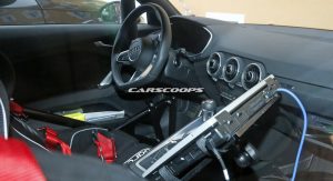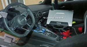Work on Audi’s next generation TT RS high-performance coupe continues under the (dis)guise of the TT S body, but for the first time, we get a peek inside a tester confirm a manual gearbox.