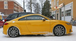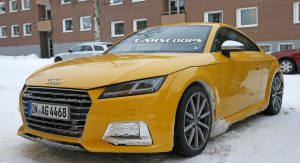 What these pictures don’t tell us is whether the new TT RS will get its mojo from an updated version of the RS3’s 2.5-liter five-cylinder turbo, as most sources claim, or as others say, the VW Group’s brand-new 2.0-liter four-cylinder previewed on the 414hp (420PS)2014 TT Quattro Sport Concept and set to power the VW Golf R400.