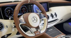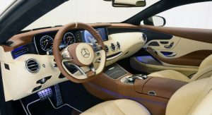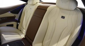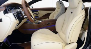Brabus’ transformation of the Mercedes-AMG S65 Coupe concludes with a carbon fiber aerodynamic kit that includes front apron, boot lid spoiler, rear diffuser and side skirts, along with carbon fiber mirror caps and trims, and a makeover of the cabin with exclusive light brown and magnolia leather, umbra-colored wood trims, aluminum components and backlit scuff plates.