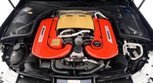 The Germans have worked their magic on the range-topper C63 S’s 4.0-liter bi-turbo V8 updating it with newly developed turbochargers featuring a larger compressor unit, a special core assembly with reinforced axial bearings, a reprogrammed ECU and a sports stainless-steel exhaust with actively controlled butterfly valves.