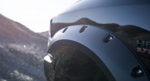 Fitting the truck with chunky 35×12,5R20 tires fitted to 9×20-inch alloys, seemed to do the trick, although the 100mm increased ride height made it even more imposing. The track width was also increased by 36mm. Just imagine meeting this thing on a narrow one-way street.