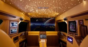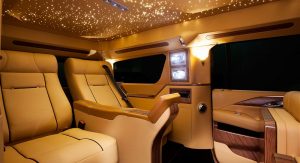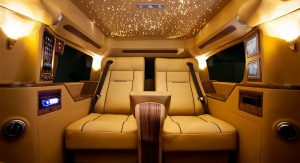 Possibly the most eye-catching interior element is Lexani’s ‘celestial headliner’, inspired by the headliners offered by Rolls-Royce models that depicts the night-time sky with hundreds of tiny LED lights.