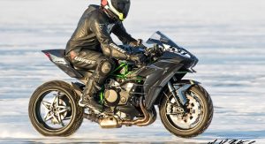 Robert Gull’s record was set with a Honda CBR 1000 RR. Since the 200 hp Ninja H2 is currently the world’s fastest street bike, Myers certainly has the right tool for the job.