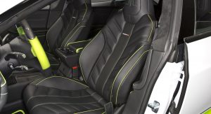 The cabin now is covered in Olivenleder, which is leather that’s been tanned with an olive-leaf agent, keeping up with the environmental-friendly character of the vehicle.