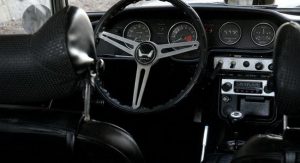 The cabin is similarly described as ‘virtually new’, with the OEM wooden steering wheel wrapped in leather and some period aftermarket additions like three-point seatbelts and slip-on headrests. All the switchgear and gauges work as they should, with the exception of the temp gauge.
