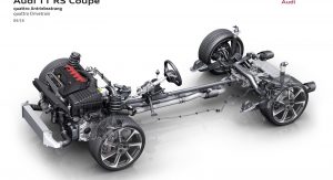 Audi claims a 3.7 second sprint from 0 to 100 km/h (62mph) for the Coupe and 3.9 seconds for the slightly heavier Roadster. Just to get an idea of how fast that is, the 540hp Audi R8 completes the same sprint in 3.5 seconds. If the rumors about a ‘Plus’ version are true, the TT RS will likely if not beat, at least match the base R8 V10’s acceleration time.