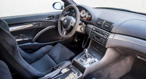 BMW returned to the idea of a limited-run special-edition BMW M3 in mid-2003, this time using the E46 model generation as the donor car. The CSL affix was a reference to the legendary BMW 3.0 CSL (for “Coupe Sport Leichtbau”) of the early 1970s. In keeping with this moniker, denoting lightweight design, the BMW M3 CSL introduced a series of weight-saving parts to the mix. The center console, interior door trim and rear-view mirror were made from carbon-fiber-reinforced plastic (CFRP), the rear window featured thinner glass, the trunk lid with integral spoiler lip was now lighter and weight had also been cut from the trunk trim. All in all, the judicious use of lightweight parts allowed the car’s curb weight to be reduced by 362 pounds to 3,053 pounds.