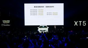 Launched at a local event, the Chinese-made Cadillac XT5 is offered in six trim levels and with a choice of front-wheel or all-wheel drive, starting from RMB 359,900, equivalent to $55,670, at today’s exchange rates, which makes is significantly more expensive over the US version that starts at $38,995.