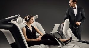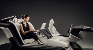 From a practicality standpoint, the Lounge Console Concept in the S90 Excellence offers passengers three alternatives. First, it can be used as a mobile working station, combining a fold-out work table and large screen for browsing the internet or video conferences. Second, it can be used as a pure “entertainment solution”, allowing you for example to watch the latest TV shows or catch up on a movie. And last, but not least, it can simply be a place of relaxation where you can recline the seat and simply enjoy a cold drink from the fridge while the heated foot support makes you as comfortable as possible.