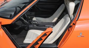 Between ’66 and ’73, the Raging Bull put together 764 units of the flagship two-door coupe sports car, with a transverse mid-engine and rear-wheel drive layout, taking power from a 3.9-liter V12 engine, rated at 350 HP in the P400. The car had an original price of $20,000, equal to approximately $150,000 today, and was replaced, in 1974, by the Countach.