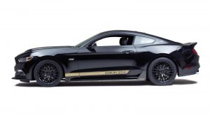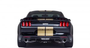 Setting it apart from ordinary ‘Stangs, the GT-H features a vented hood and a front splitter and rear spoiler made from carbon fiber. It’s all done up in black with gold racing stripes, with all the special badges you’d expect, both inside and out.