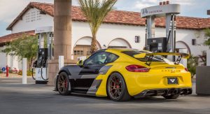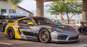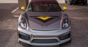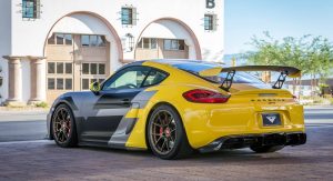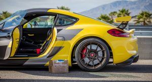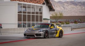 Since we’re talking about performance, when stock, the Cayman GT4 will accelerate to 100 km/h (62 mph) in 4.4 seconds before maxing out at 295 km/h (183 mph). It’s powered by a 385 PS, 420 Nm (309 lb-ft) flat-six 3.8-liter engine that was undoubtedly tested to its limits at The Thermal Club track – which is the location pictured in the mega-gallery bellow.