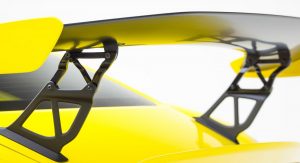 Built out of pre-preg carbon fiber, with a UV-inhibiting clear lacquer coating, the kit consists of a front splitter, side skirts, rear diffuser and a fixed rear wing with riser extensions.