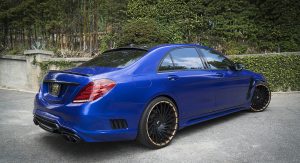 The one pictured here owes its new-found aggressiveness to Wald International’s Black Bison Edition kit, which includes quite a few new elements such as the front and rear bumpers, custom LED daytime running lights, side skirts, diffuser, stacked exhaust pipes and a significantly lower rife.
