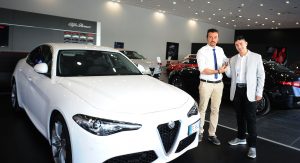 Finally, the Italian automaker started manufacturing its premium saloon and handed over the first six examples in its domestic market yesterday. Two were delivered with the 180-horsepower diesel engine in Milan and Arezzo, and four with the 150hp diesel in Mantua, Perugia, Bari and Ragusa. They were all in Super trim and came in a variety of colors including Montecarlo Blue, Vesuvio Grey, Vulcano Black and Alfa White.