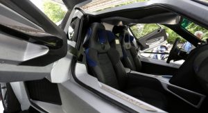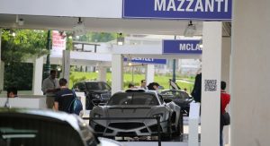 Surrounded by enthusiasts who wanted to take a closer look at the supercar that will be produced in just 25 examples, the Mazzanti Evantra Millecavalli, whose name stands for “a thousand horsepower”, utilizes a 7.2-liter twin-turbo V8 engine that channels 1,000 HP and 1,200 Nm (885 lb-ft) to the rear wheels through a six-speed sequential transmission. Going from naught to sixty (96 km/h) takes 2.7 seconds and top speed stands at 250 mph (402 km/h). Pricing has yet to be announced, but it will eclipse the standard Evantra’s £665,000 ($941,550).