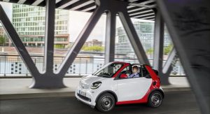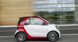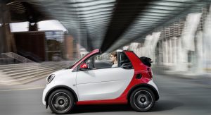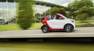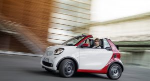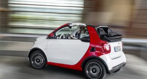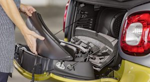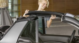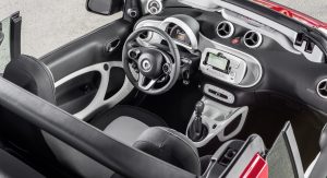 All versions of the new Smart ForTwo Cabrio carry a soft-top that has the ability to retract automatically in 12 seconds. The roof can be had in either black or dark red, at no extra cost, but if you want to enjoy the full convertible experience, then you have to pull over, remove the roof bars by hand and store them in the tailgate.
