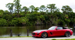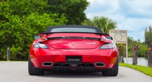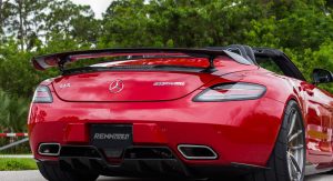 Available for Roadster version of Merc’s supercar, the package adds a set of carbon fiber side skirts, including two rocker panel extensions and two rear fascia trim pieces aerodynamically-tweaked, which will set you back $4,650.