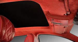 In this case, we’re looking at a bespoke cabin dominated by red crocodile leather, regular red leather, red alcantara, wood, a few red carbon inserts on the door handles and around the air vents, sat-nav, climate control and multimedia interface.