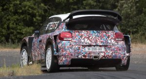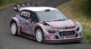 Visually, Citroen’s 2017 WRC car boasts 55 extra mm (2.1 in) in width, large air scoops, a rear diffuser, a massive wing and several other FIA-approved mods. As for performance, its 1.6-liter turbocharged petrol engine is good for about 380 HP, while overall weight has been reduced by 25 kg (55 lbs).