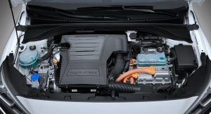 Powered by a hybrid powertrain that combines a 103hp (105PS) 1.6-litre petrol engine with a 43hp (43.5PS) electric motor via a six-speed dual-clutch gearbox, the Ioniq Hybrid produces a total of 139hp (141PS) and 108lb ft (147Nm) of torque. 0-62mph (0-100km/h) comes in 10.8 seconds with the top speed set at 115mph (185km/h). Hyundai claims a combined fuel economy of 83.1 mpg UK (3.4lt/100km) and just 79gr/km of CO2 emissions for the base model with the 15in wheels.