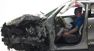 By comparison, the previous version, which was rated Marginal in the same test, measured as much as 10 inches (25.4 cm) of intrusion at the lower door hinge pillar, the steering column moved by 5 inches (12.7 cm) to the right and the dummy’s head barely contacted the frontal airbag before sliding off to the left side.