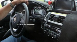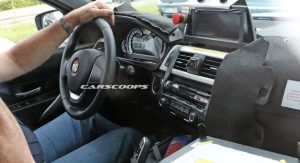 Still heavily disguised as it is, it’s hard to tell much from this swirly-camouflaged prototype aside from the fact that it is quite clearly a BMW. And given the size, it’s pretty obvious that we’re looking at the next 3 Series. But this latest set of spy shots also gives us our first glimpse inside the cockpit.