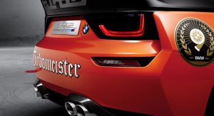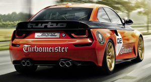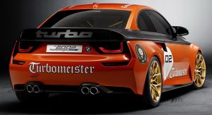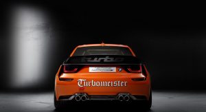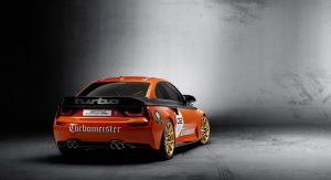 As such, it is painted in a brand new shade of burnt orange and rolls on a set of eye-catching 20-inch alloy wheels combining gold and silver spokes. The upper half of the concept is painted black, giving the concept a true race car feel, further reinforced by the Turbomeister decals and the gold brake calipers.