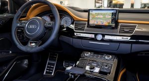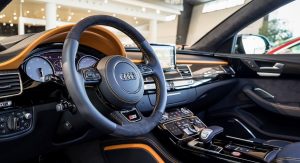 You’ll find more orange on the floor mats, upper dashboard surround and seat belts, making this one of the most colorful Audi S8 interiors we’ve ever seen.